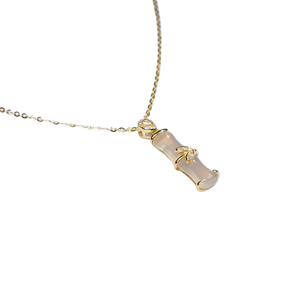 Graceful and symbolic, this bamboo-inspired pendant features smooth natural agate wrapped with delicate leaf accents. Crafted in gold‑plated S925 sterling silver, it brings a serene, nature‑inspired elegance to everyday looks.